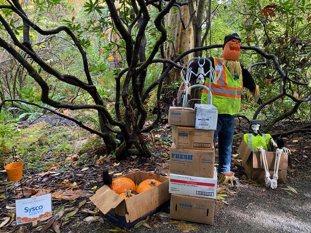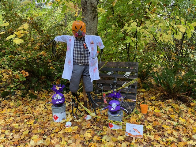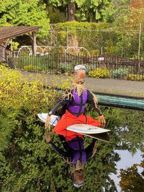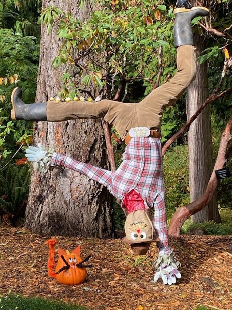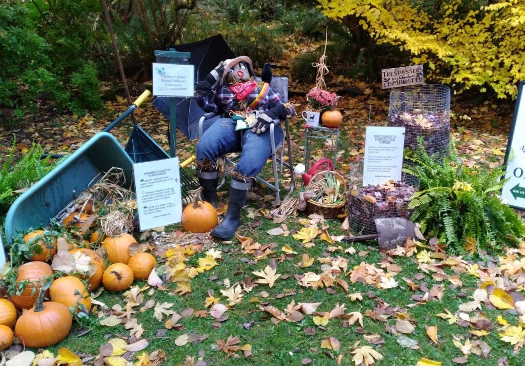 Some very energetic scarecrows! They would definitely scare a few crows. PQN’s scarecrow, however, looks exhausted. I heard PQN members had him winterizing ALL their gardens this past week. No wonder he is exhausted. What task masters they are!
