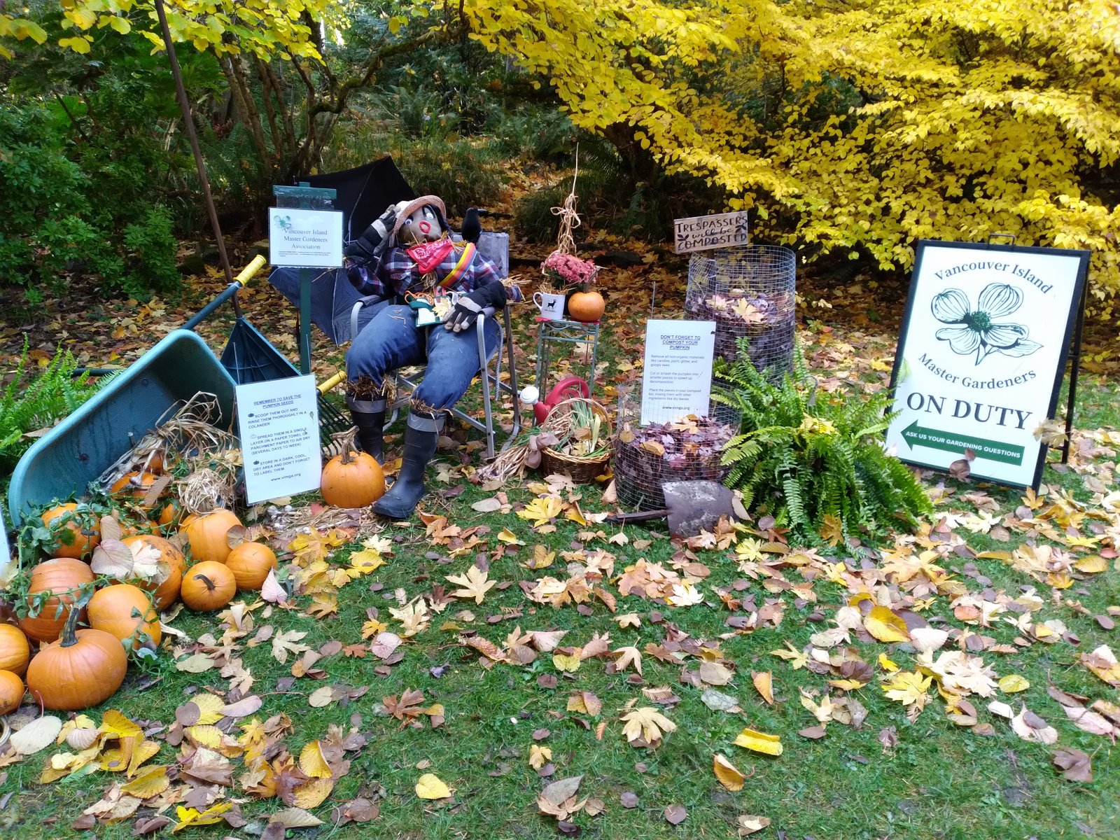 Some very energetic scarecrows! They would definitely scare a few crows. PQN’s scarecrow, however, looks exhausted. I heard PQN members had him winterizing ALL their gardens this past week. No wonder he is exhausted. What task masters they are!